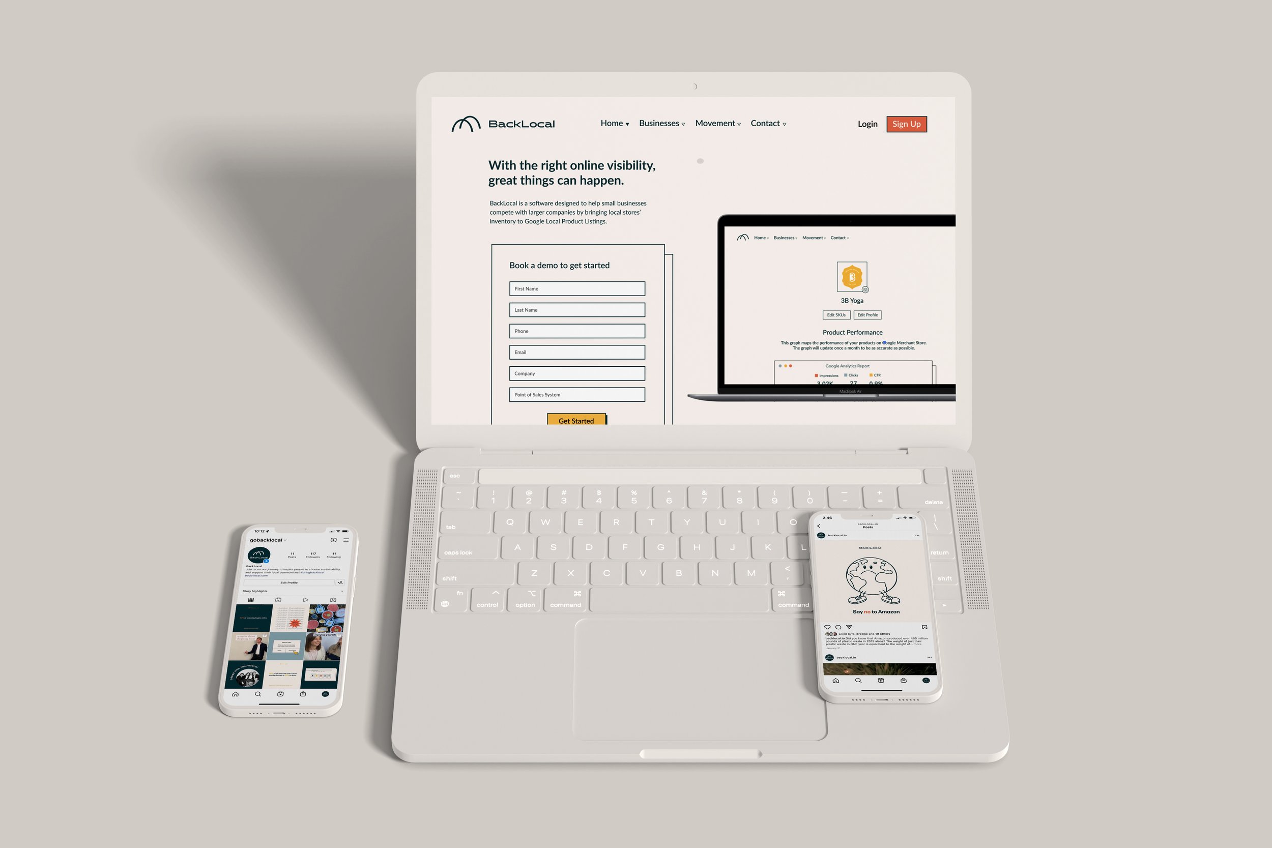 BackLocal is a software company aimed at empowering small businesses to compete with larger corporations by integrating local store inventories into Google Local Product Listings. As a co-founder and CXO, I led branding, product design, and marketing efforts for the company. My responsibilities included designing the website, creating business pitch decks, presenting to angel investors, and participating in high-level business discussions and decisions.